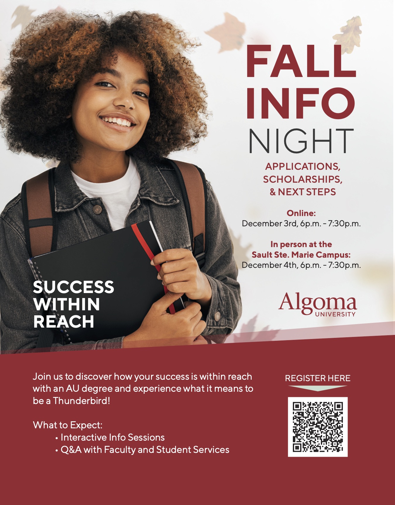 We are excited to host you online or at our Sault Ste. Marie campus – see details below: